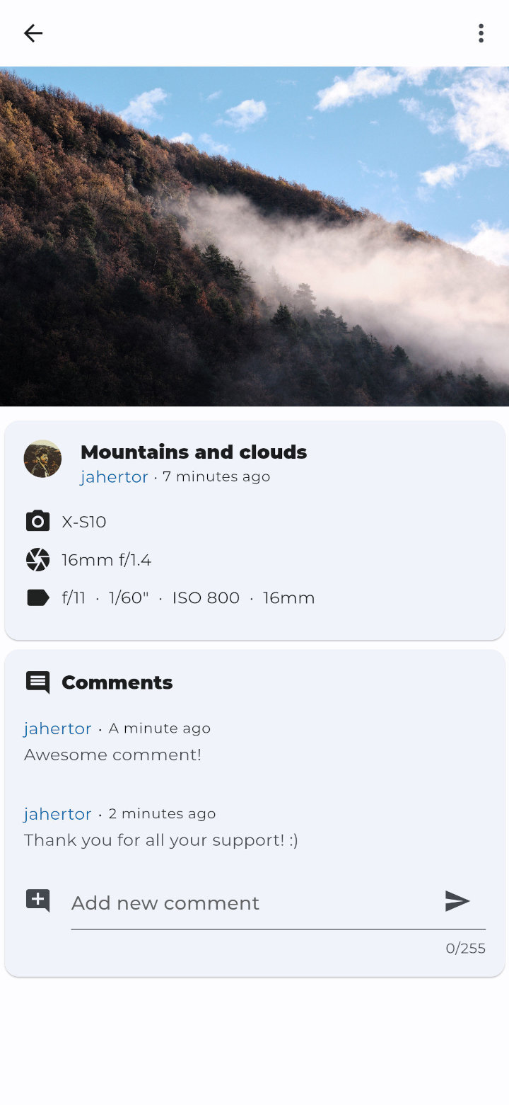 Metadata automatically filled: ISO, aperture, shutter, focal...